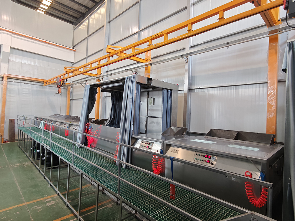 本次上线的荧光渗透检测线采用半自动化工艺布局,涵盖预处理、清洗、干燥、渗透、去除、烘干、显像、观察与后清洗等关键环节。各个处理槽体内胆采用304 不锈钢材质;连接各槽的水、压缩空气管路采用控制阀自动控制。电气部分采用PLC(西门子)进行控制;各工位槽设有控制面板可对工艺参数进行设定;采用恒温恒湿控制系统保证检测环境达标;设有专门的污水处理装置保证检测后的废水达标。